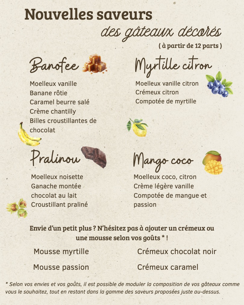 Moduler la composition reste possible dans notre gamme de saveurs pour un gâteau sur mesure, alliant créativité et équilibre des textures.